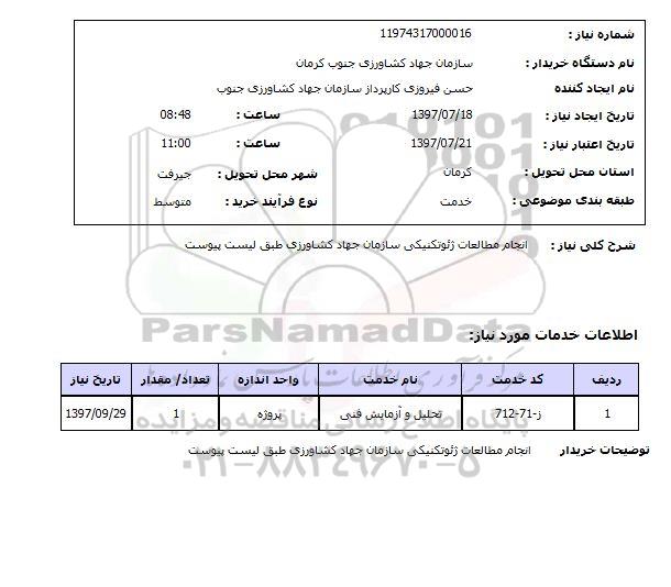 نام دستگاه خریدار: سازمان جهاد کشاورزی جنوب کرمان