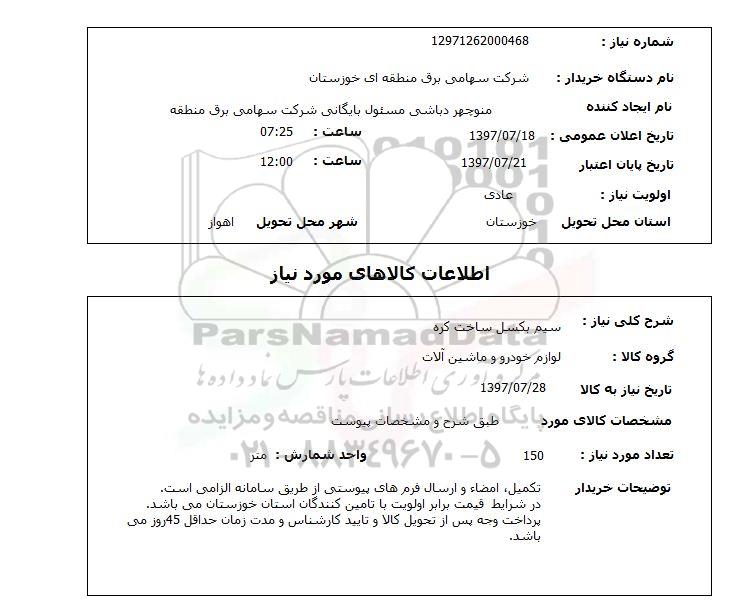 نام دستگاه خریدار شرکت سهامی برق منطقه ای خوزستان