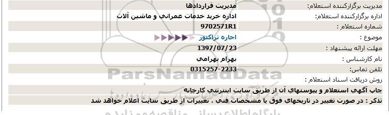 استعلام اجاره تراکتور , استعلام اجاره تراکتور