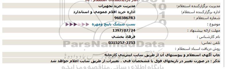 اداره برگزارکننده استعلام اداره خرید اقلام عمومی و استاندارد