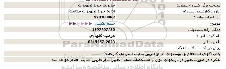 اداره برگزارکننده استعلام: اداره خرید تجهیزات مکانیک