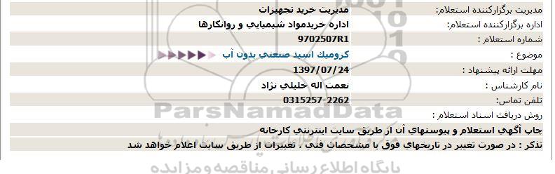 اداره برگزارکننده استعلام: اداره خریدمواد شیمیایی و روانکارها