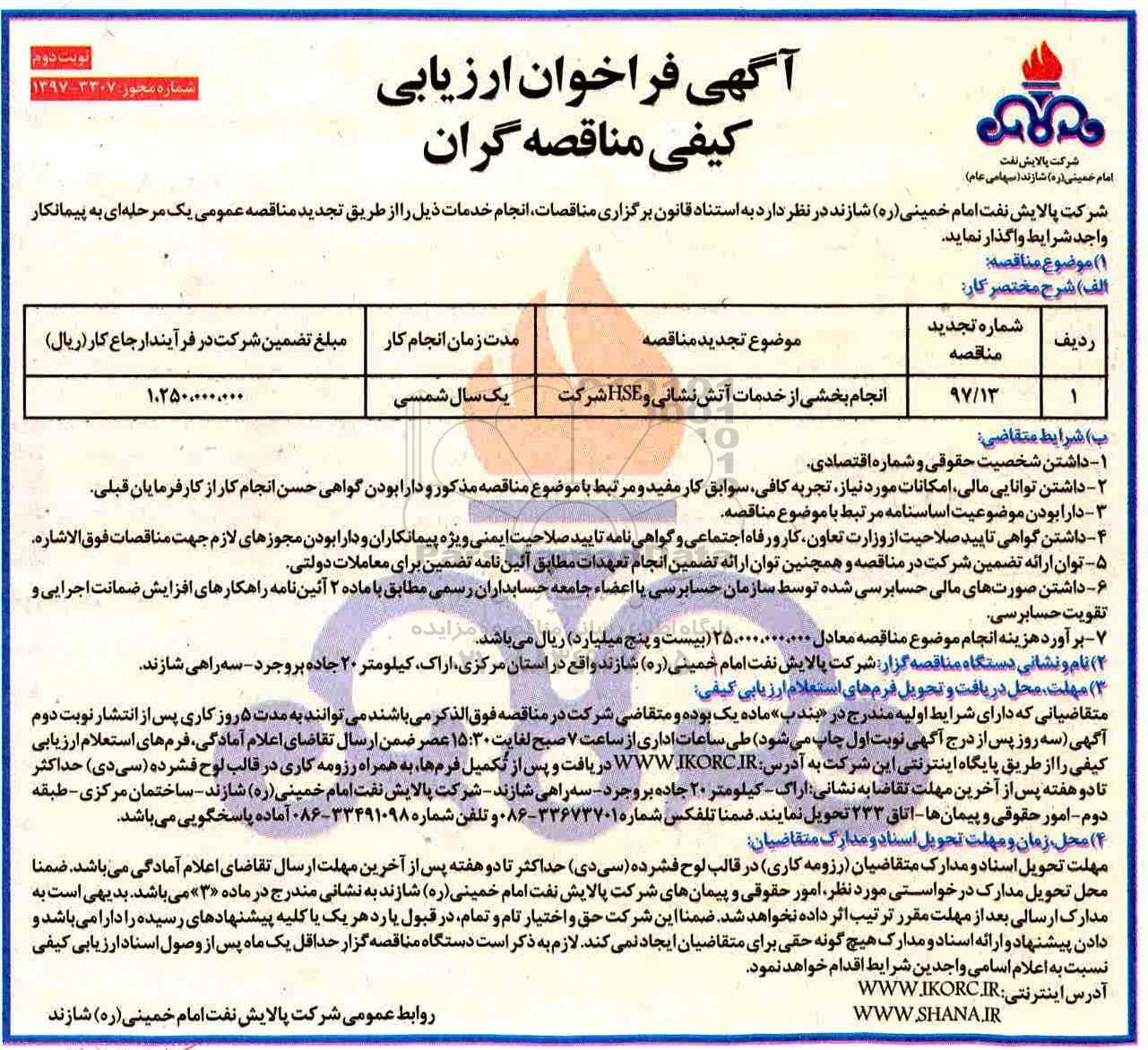 97/13 انجام بخشی از خدمات آتش نشانی و HSE شرکت