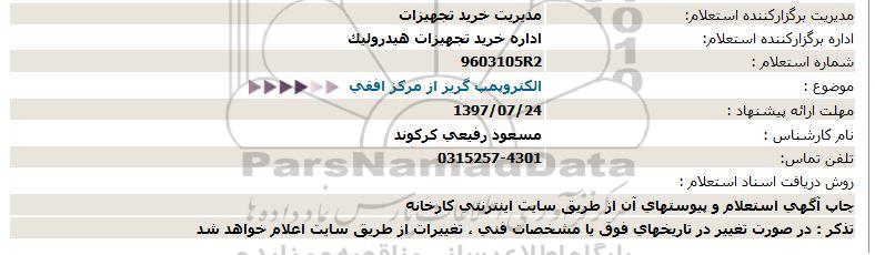 اداره برگزارکننده استعلام: اداره خرید تجهیزات هیدرولیک