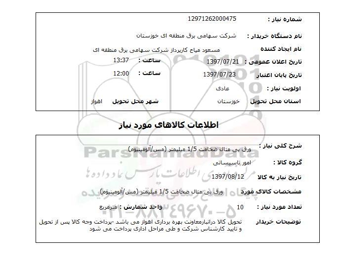 نام دستگاه خریدار شرکت سهامی برق منطقه ای خوزستان