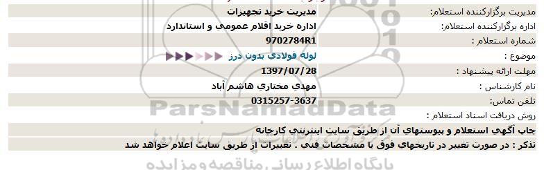 استعلام لوله فولادی بدون درز , استعلام, استعلام لوله فولادی بدون درز