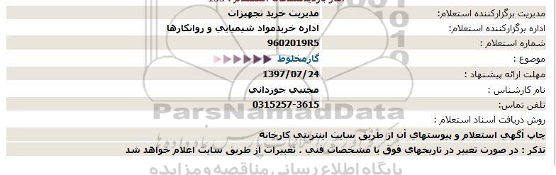 اداره برگزارکننده استعلام: اداره خریدمواد شیمیایی و روانكارها