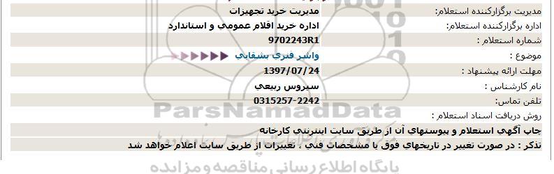اداره برگزارکننده استعلام: اداره خرید اقلام عمومی و استاندارد