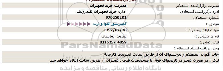 اداره برگزارکننده استعلام: اداره خرید تجهیزات هیدرولیک