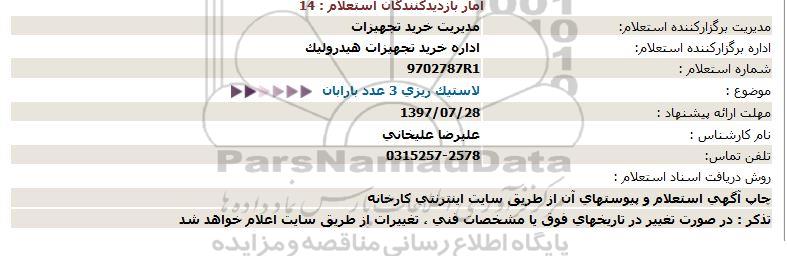 اداره برگزارکننده استعلام: اداره خرید تجهیزات هیدرولیک