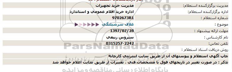 اداره برگزارکننده استعلام:     اداره خرید اقلام عمومی و استاندارد
