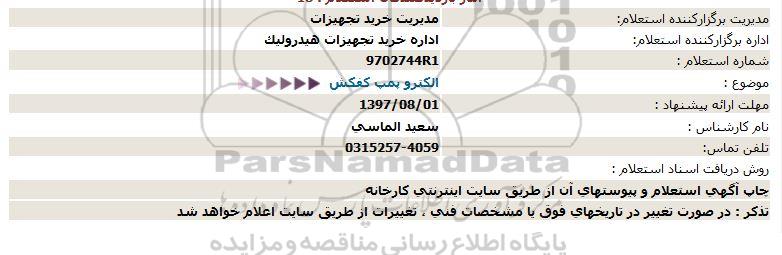 اداره برگزار کننده استعلام: اداره خرید تجهیزات هیدرولیک