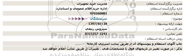 اداره برگزارکننده استعلام: اداره خرید اقلام عمومی و استاندارد