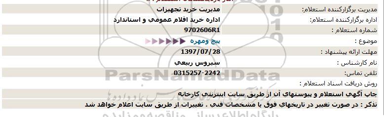 اداره برگزارکننده استعلام: اداره خرید اقلام عمومی و استاندارد