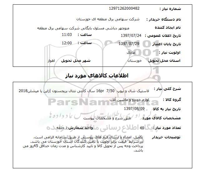 نام دستگاه خریدار : شرکت سهامی برق منطقه ای خوزستان