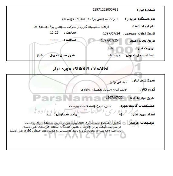 نام دستگاه خریدار    شرکت سهامی برق منطقه ای خوزستان