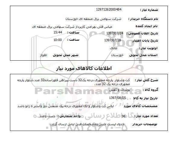 نام دستگاه خریدار: شرکت سهامی برق منطقه ای خوزستان
