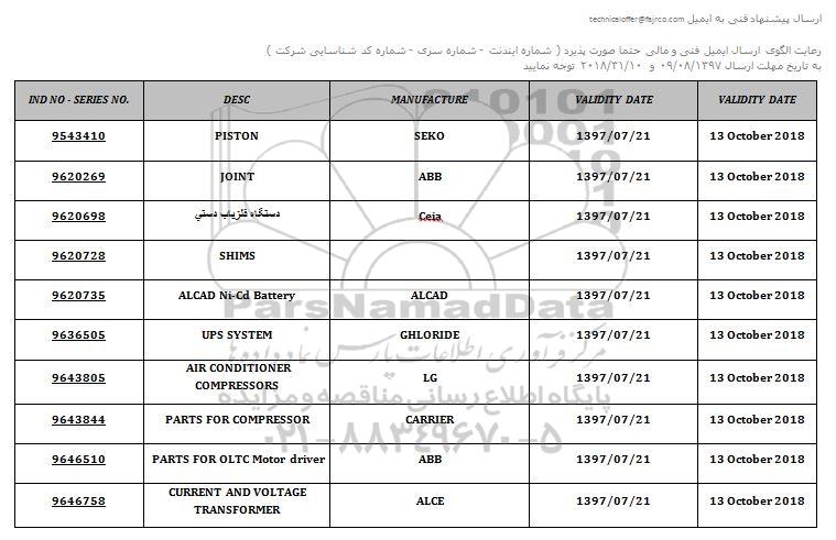 رعایت الگوی ارسال ایمیل فنی و مالی حتما صورت پذیرد ( شماره ایندنت - شماره سری - شماره کد شناسایی شرکت )