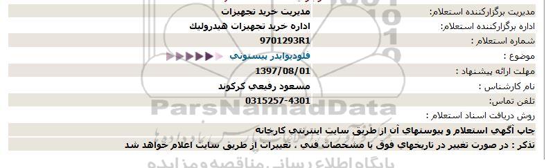 اداره برگزارکننده استعلام: اداره خرید تجهیزات هیدرولیک