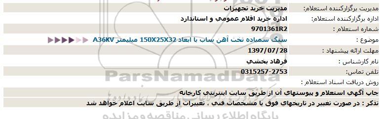 اداره برگزارکننده استعلام: اداره خرید اقلام عمومی و استاندارد
