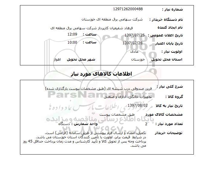 شرح کلی نیاز فریزر صندوقی درب شیشه ای طبق مشخصات پیوست بارگذاری شده