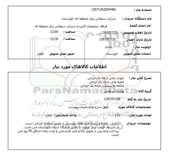 شماره نیاز: 12971262000486