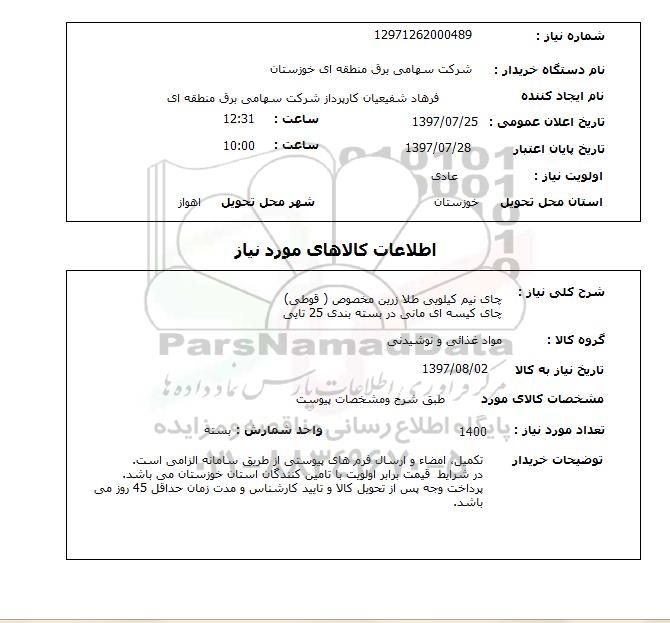 نام دستگاه خریدار: شرکت سهامی برق منطقه ای خوزستان