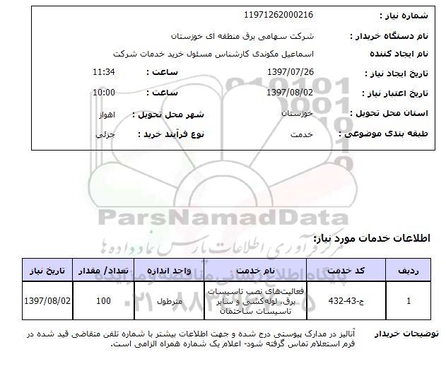نام دستگاه خریدار: شرکت سهامی برق منطقه ای خوزستان