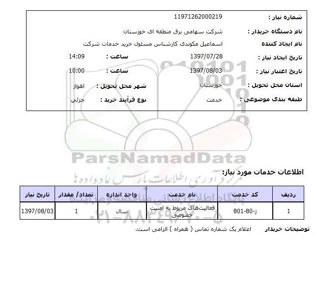 نام دستگاه خریدار: شرکت سهامی برق منطقه ای خوزستان