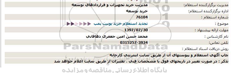 موضوع: تجدید استعلام خرید یونیت پمپ