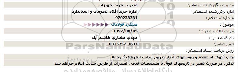 اداره برگزارکننده استعلام:     اداره خرید اقلام عمومی و استاندارد