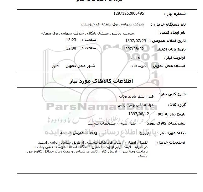 نام دستگاه خریدار: شرکت سهامی برق منطقه ای خوزستان