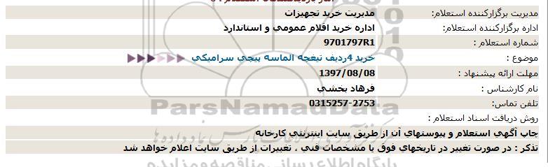 اداره برگزارکننده استعلام: اداره خرید اقلام عمومی و استاندارد