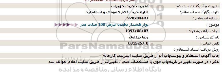 اداره برگزارکننده استعلام: اداره خرید اقلام عمومی و استاندارد