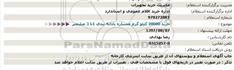 استعلام خرید 20000 كیلو گرم مسباره, استعلام , استعلام خرید 20000 كیلو گرم مسباره