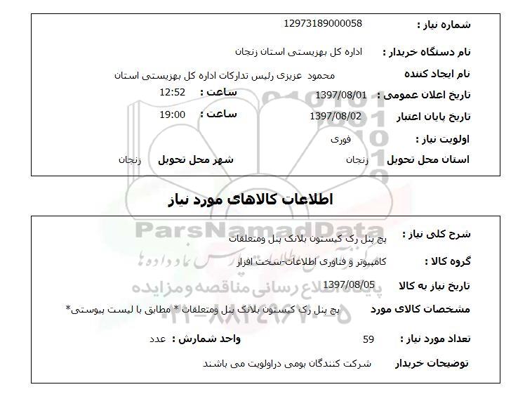 نام دستگاه خریدار : اداره کل بهزیستی استان زنجان