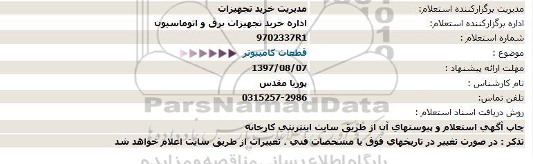 اداره برگزارکننده استعلام: اداره خرید تجهیزات برق و اتوماسیون