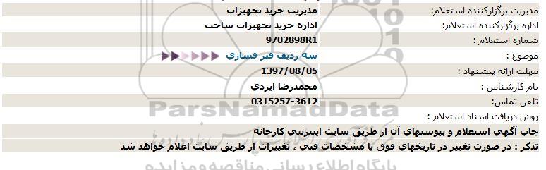 اداره برگزارکننده استعلام: اداره خرید تجهیزات ساخت