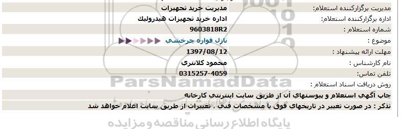 اداره برگزارکننده استعلام: اداره خرید تجهیزات هیدرولیک