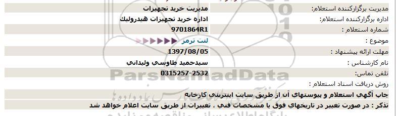 اداره برگزارکننده استعلام: اداره خرید تجهیزات هیدرولیک