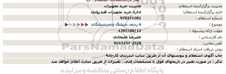 اداره برگزارکننده استعلام: اداره خرید تجهیزات هیدرولیک