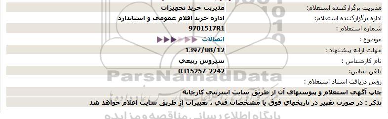 اداره برگزارکننده استعلام: اداره خرید اقلام عمومی و استاندارد