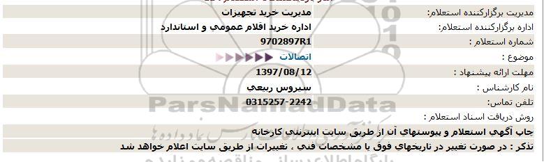اداره برگزارکننده استعلام: اداره خرید اقلام عمومی و استاندارد