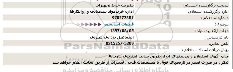 اداره برگزارکننده استعلام: اداره خریدمواد شیمیایی و روانكارها