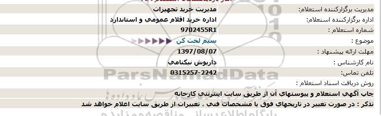 اداره برگزارکننده استعلام: اداره خرید اقلام عمومی و استاندارد