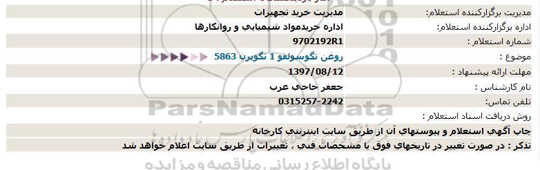 اداره برگزارکننده استعلام: اداره خریدمواد شیمیایی و روانکارها