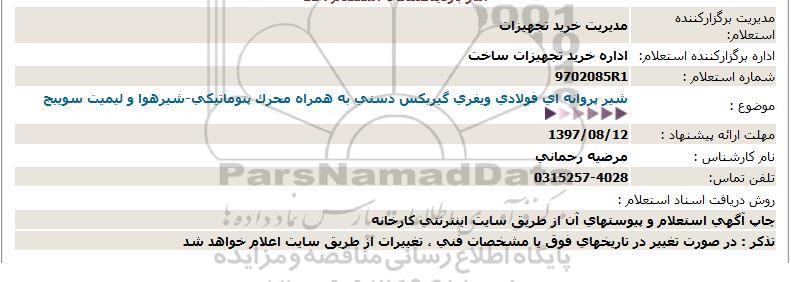 اداره برگزارکننده استعلام: اداره خرید تجهیزات ساخت