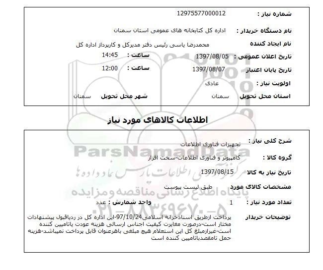 نام دستگاه خریدار : اداره کل کتابخانه های عمومی استان سمنان