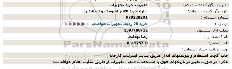 اداره برگزارکننده استعلام: اداره خرید اقلام عمومی و استاندارد