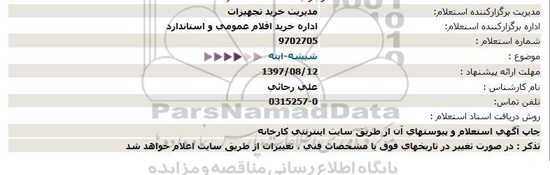 اداره برگزارکننده استعلام: اداره خرید اقلام عمومی و استاندارد